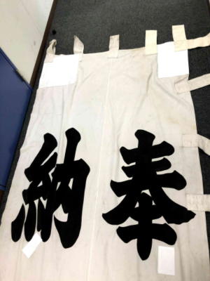 神社のぼり修理をいたします。修理費用は修理箇所・修理の度合いによって異なりますので、現物を拝見し見積りいたします。