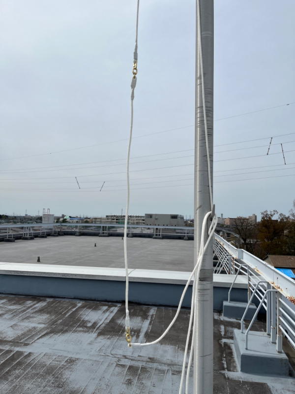 取り付けますが、万が一旗自体が切れた場合、ロープがはずれて