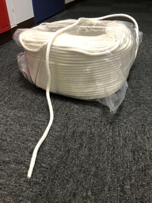 「クレモナ」はクラレが生産するビニロンとポリエステルの混紡糸の商標。ビニロン60%・ポリエステル40%の混紡糸を使用した国内製造の高級ロープ。このうち金剛打ちは通常の3打ちロープと違い、表面の凹凸が少ないため滑車を通した時のガタツキが少なくヨジレが発生しにくいのが特徴です。