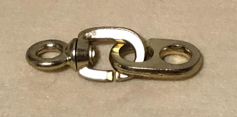 スイブルとフック金具を各々のロープに固定し繋ぐ金具です。この金具の必要性はスイブルが360度回転するのでロープのヨジレを防止します。ロープがヨジレたままだとロープに変なクセが付き痛みが早くなり、滑車の通りも悪くなります。よって、ロープ交換の際はスイブル・フックも併せて購入してください。